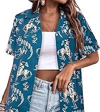 - Flattering unique Hawaiian shirt make you so charming and beautiful in the crowd.Multi-way Wearing: tuck in/open front/tie up/button down/unbutton/cover up, etc. Dress up or dress down easily.