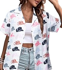 Hawaii Shirt Women Summer Vacation Button Down Short Sleeve Hawaiian Shirts